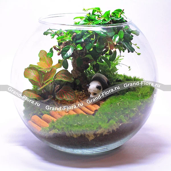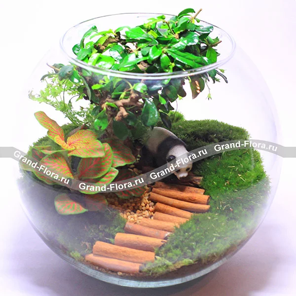 Стандартный: флорариум, бонсай, фиттония, мох, фигурка панды.